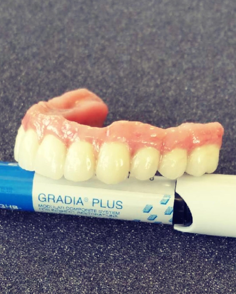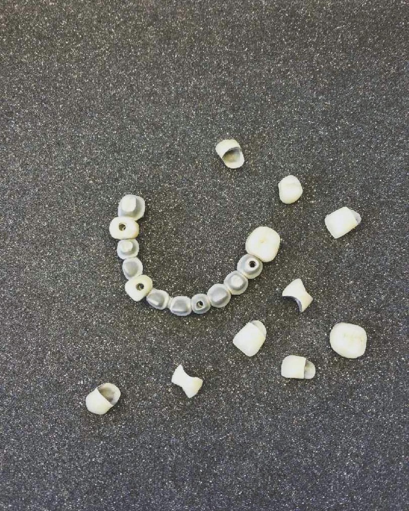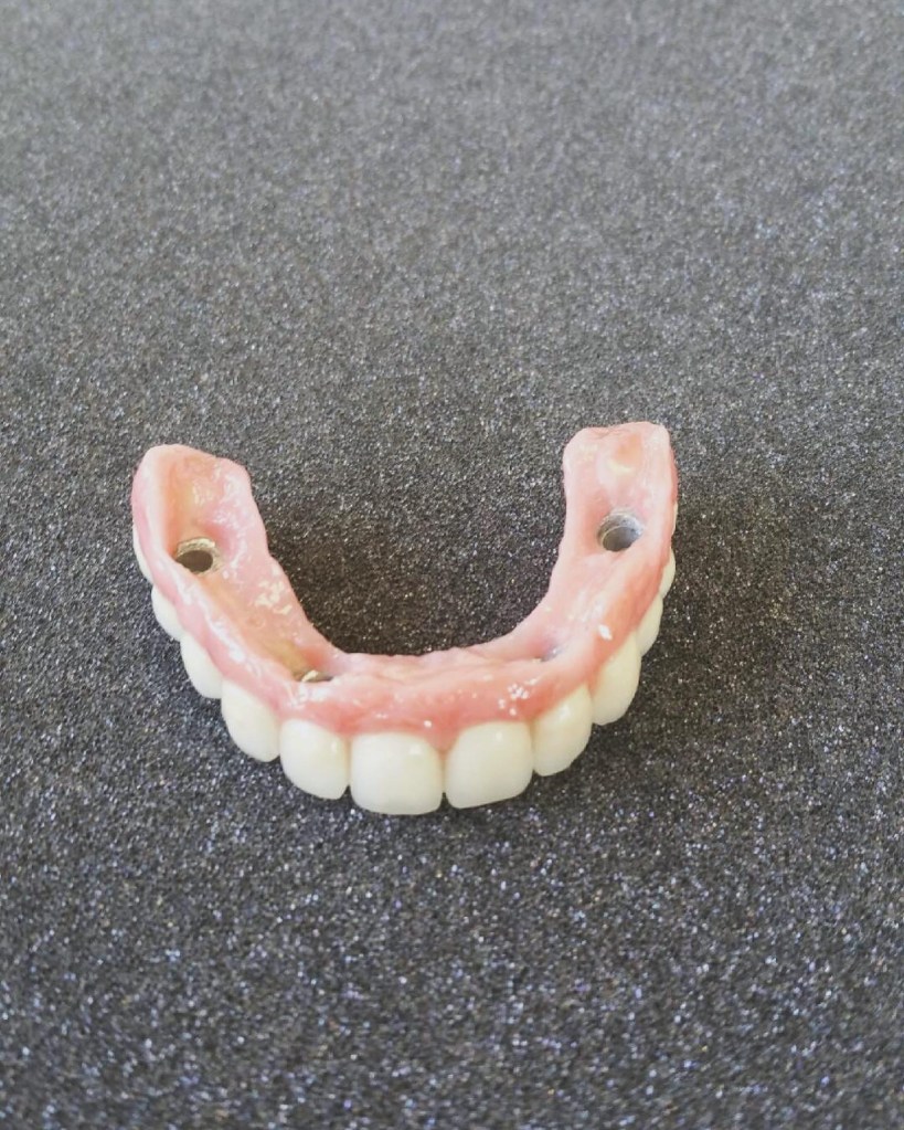 Bridge Complet cérame-métal téléscopique avec fausse gencive.